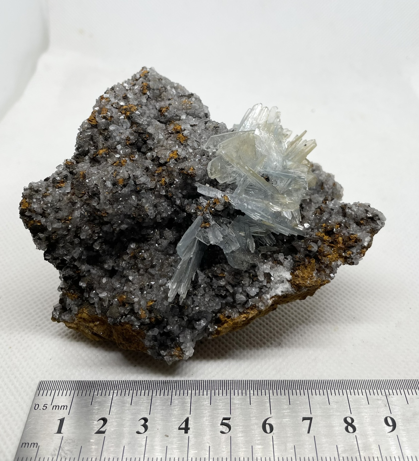 An aesthetic specimen exhibiting finely bladed blue crystals of Barite