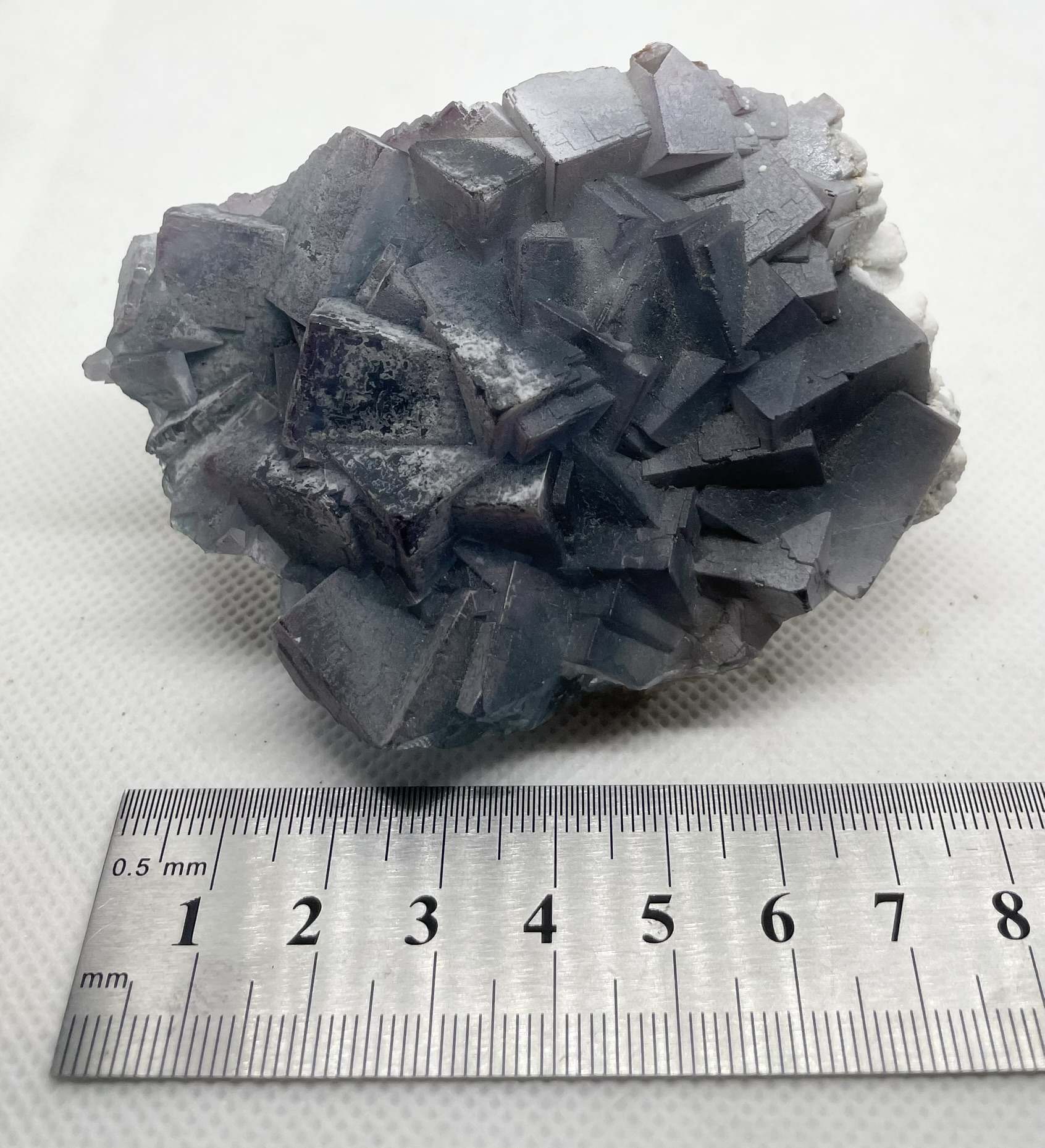 Interlocking cubes of teal coloured fluorite capped with purple zonations.