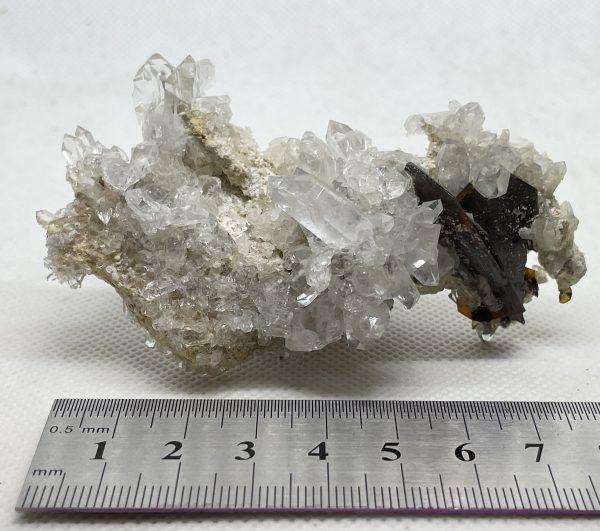 Large reddish blades of Brookite nestled within gemmy terminated Quartz crystals.