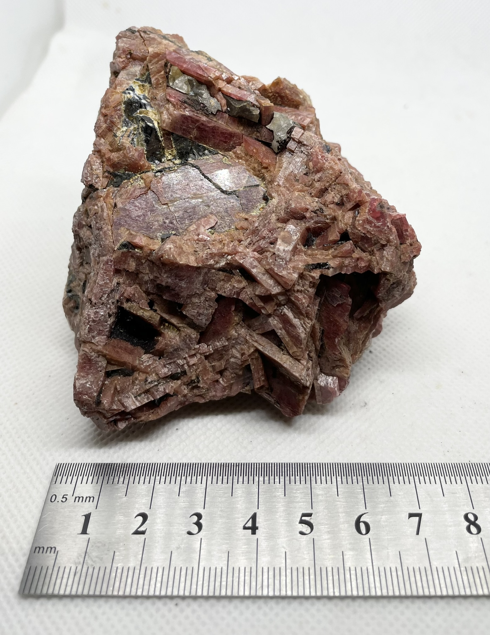Interlocking bladed crystals of Bustamite with minor Quartz & Galena
