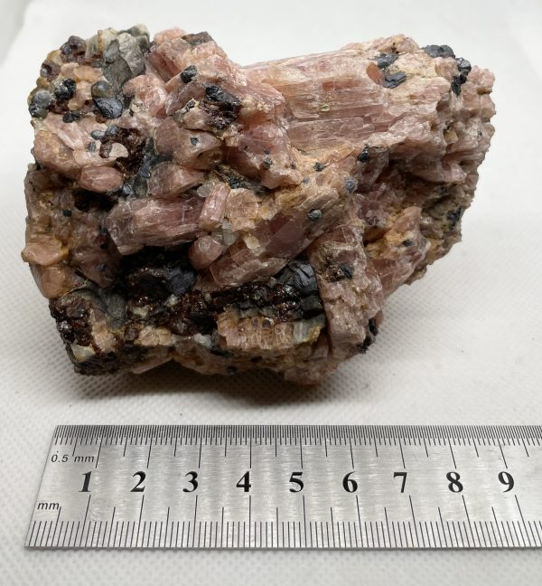 Pink Bustamite with deep firey red Spessartine Garnets & Galena