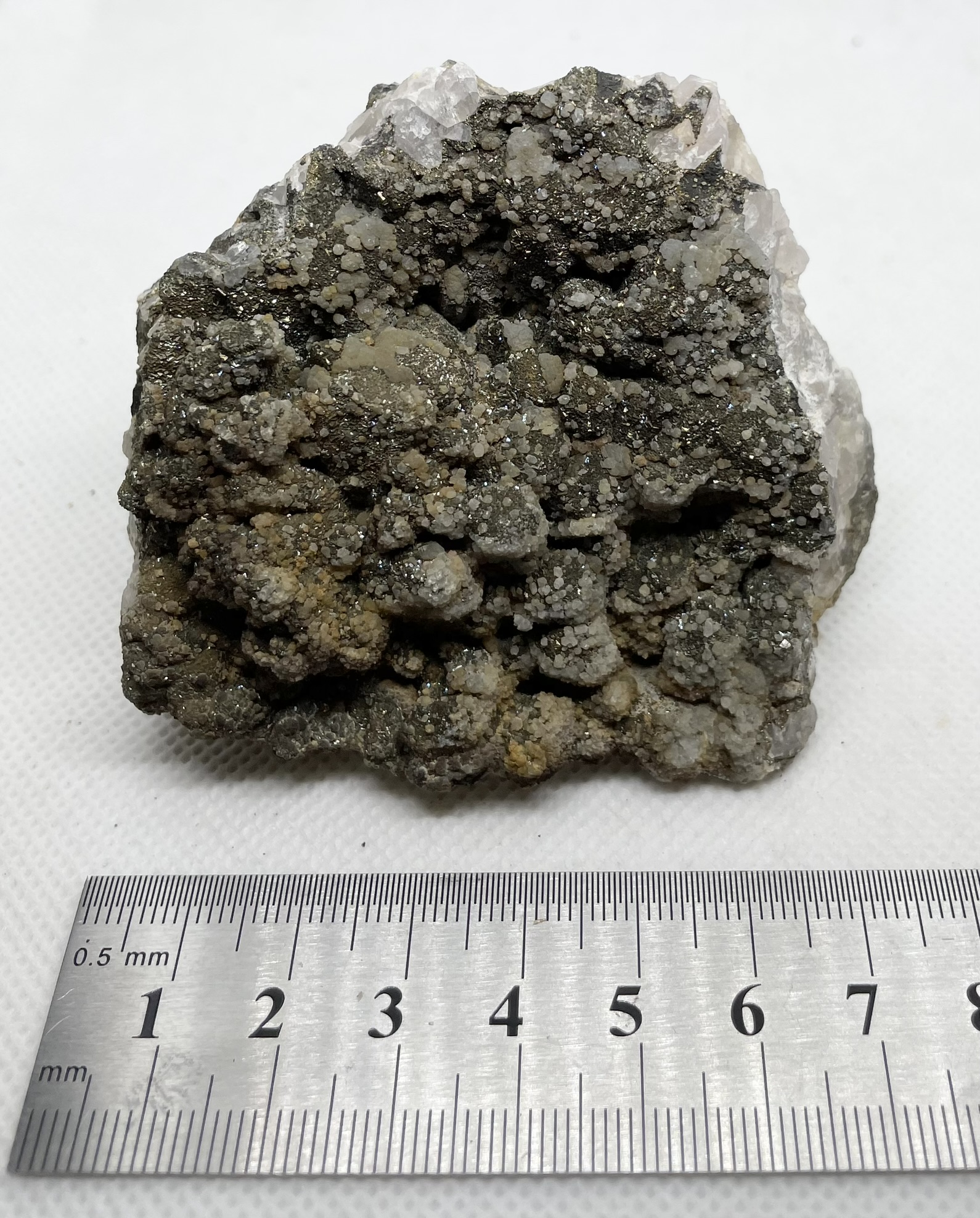 Nail head Calcite crystals with an overgrowth of Pyrite