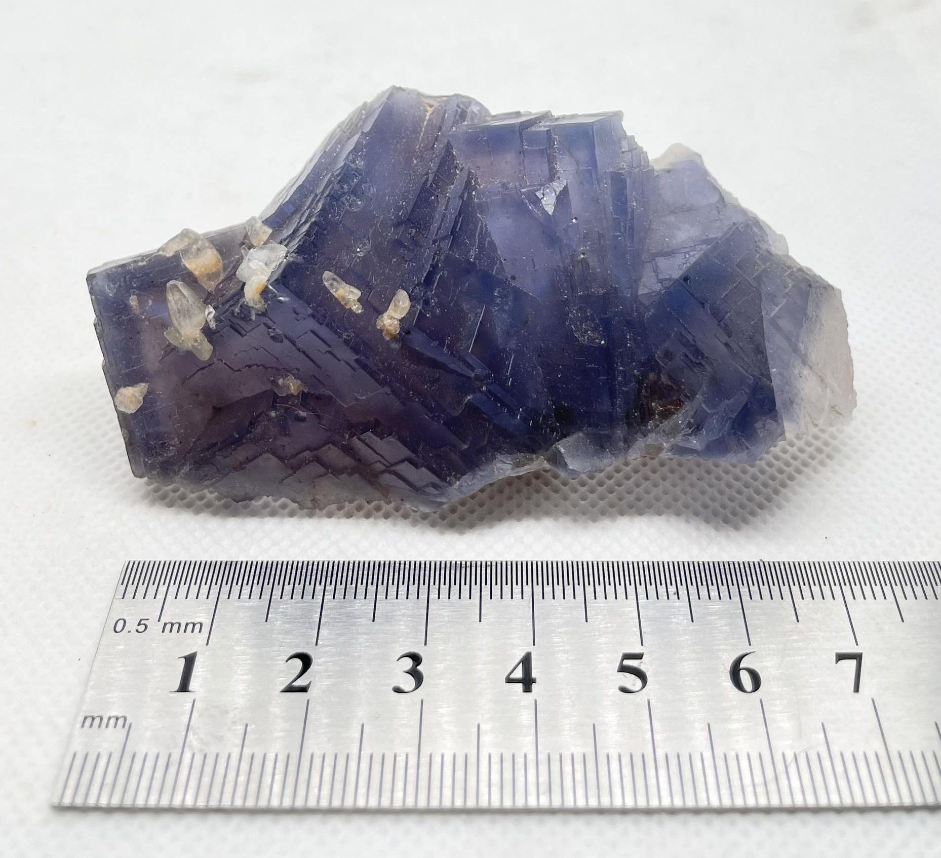 Interlocking cubes of purplish-blue Fluorite with minor calcite