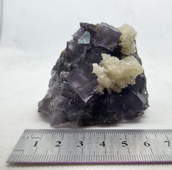 Purple cubic Fluorite with associated creamy coloured Barite on a matrix or Sphalerite.