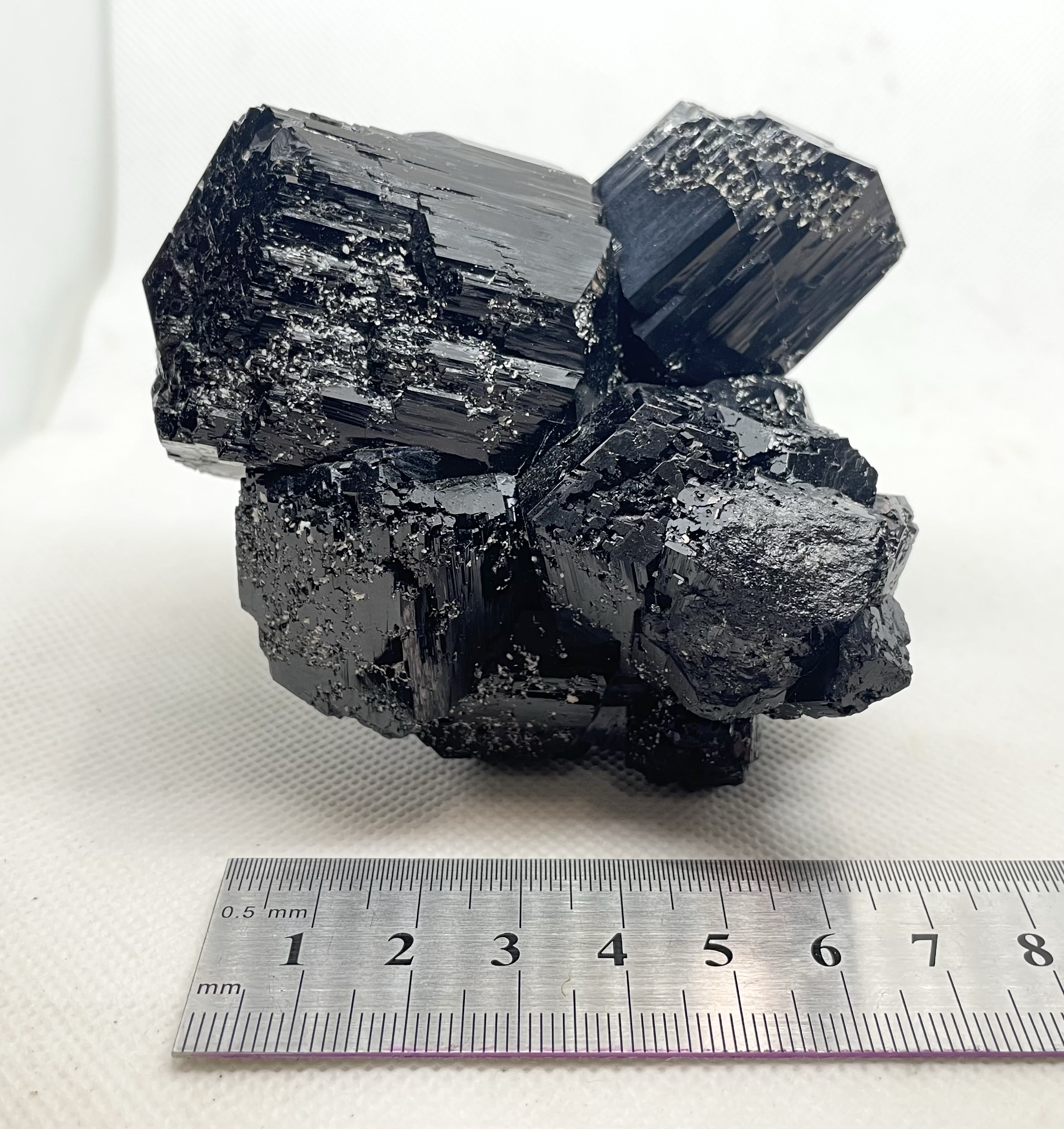 Lustrous and blocky interlocking crystals of Tourmaline var. Schorl.